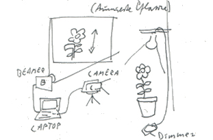eine pflanzenanimation anbietet, die vom beamer b an die wand projiziert wird.